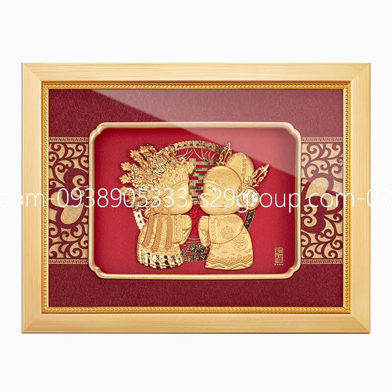 Quà tặng đám cưới tranh trang trí lá vàng 24k cao cấp dành cho cặp đôi mới cưới, bạn gái và bạn bè, món quà sáng tạo, cá tính, lãng mạn và tinh tế